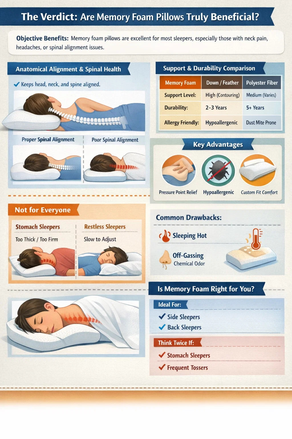 Befejezésül memóriahab párnák Kiváló egészségügyi befektetés, ha a nyaktámogatást és az allergia csökkentését részesíti előnyben. Különösen előnyösek azok számára, akik ülő íróasztalon dolgoznak, és akiknél "tech nyak" vagy krónikus felsőtesti feszültség tapasztalható. Ha olyan párnát választ, amely megfelel az alvási testtartásának és az éghajlati igényeinek, jelentősen javíthatja gerincének hosszú távú egészségét és általános alvásminőségét.